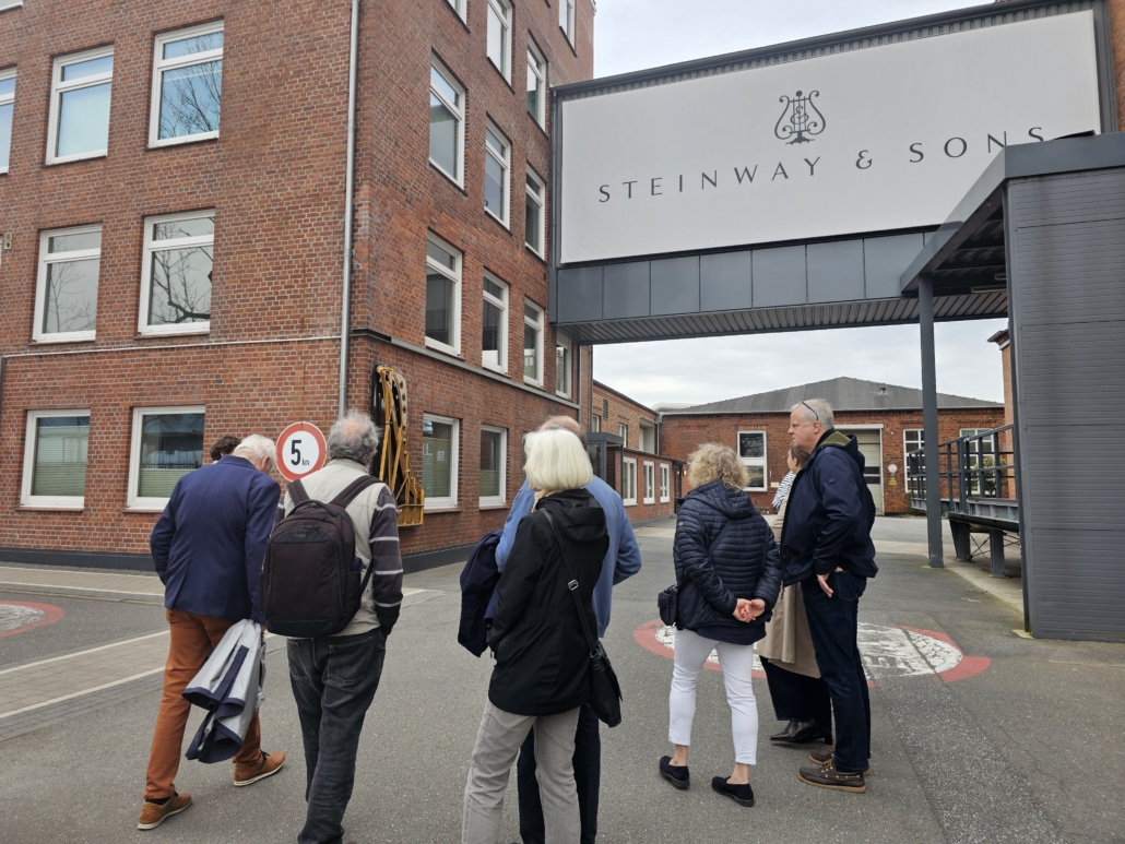 Am 18.04.2026 erhielten 13 Mitglieder der „Freunde und Förderer der NDR Radiophilharmonie“ auf dem Firmengelände von Steinway & Sons in Hamburg beeindruckende Einblicke in die Flügelfertigung der international bekannten Klavierbaufirma.