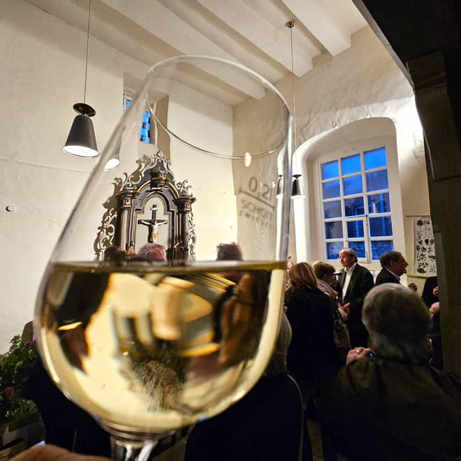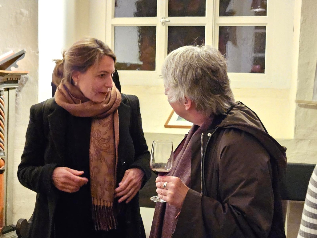 Nach den Darbietungen war wieder Platz für Fragen und danach auch bei Wein und Knabberei Gelegenheit zu persönlichen Gesprächen. Es war schön, sich so nah zu begegnen und interessant, welche Fragen auftauchten.