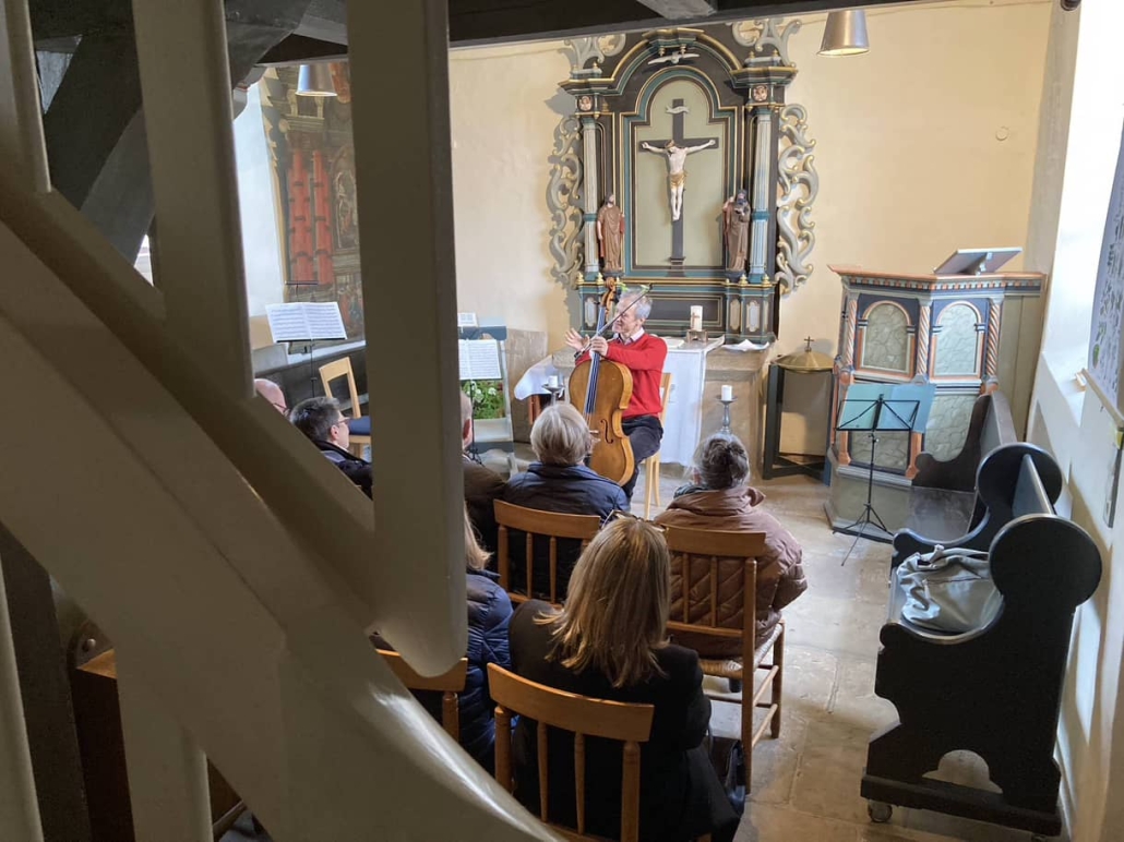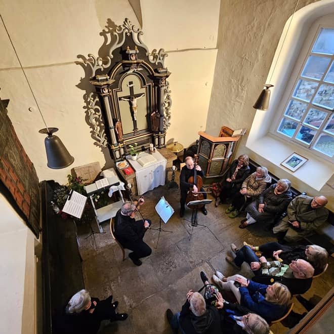 Für das Format „ Musik ganz nah“ wurde in diesem Frühjahr wieder ein sehr intimer Ort gefunden: die Wehrkirche in Arnum, eine Feldsteinkapelle aus dem 15. Jahrhundert mit etwa 20 Plätzen für Mitglieder des Freundeskreis.