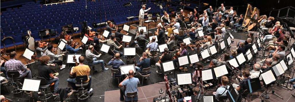 Andrew Manze war mitten in den Proben der 3. Sinfonie von Gustav Mahler, die am 07.09.2019 zur Saisoneröffnung zusammen mit der Mezzosopranistin Anne Sofie von Otter, den Damen des NDR Chores sowie dem Knabenchor Hannover aufgeführt werden sollte. Als „Freunde und Förderer“ konnten wir die Probe aus dem Chorrang, also hinter und oberhalb des Orchesters sitzend, zuhören. Aus dieser ganz anderen Perspektive beobachteten wir die Orchestermusiker meistens von hinten oder seitlich sitzend. Ungewohnt, aber aufschlussreich war es, Andrew Manze mit seinem ausdrucksstarken Dirigat von vorne zu sehen.